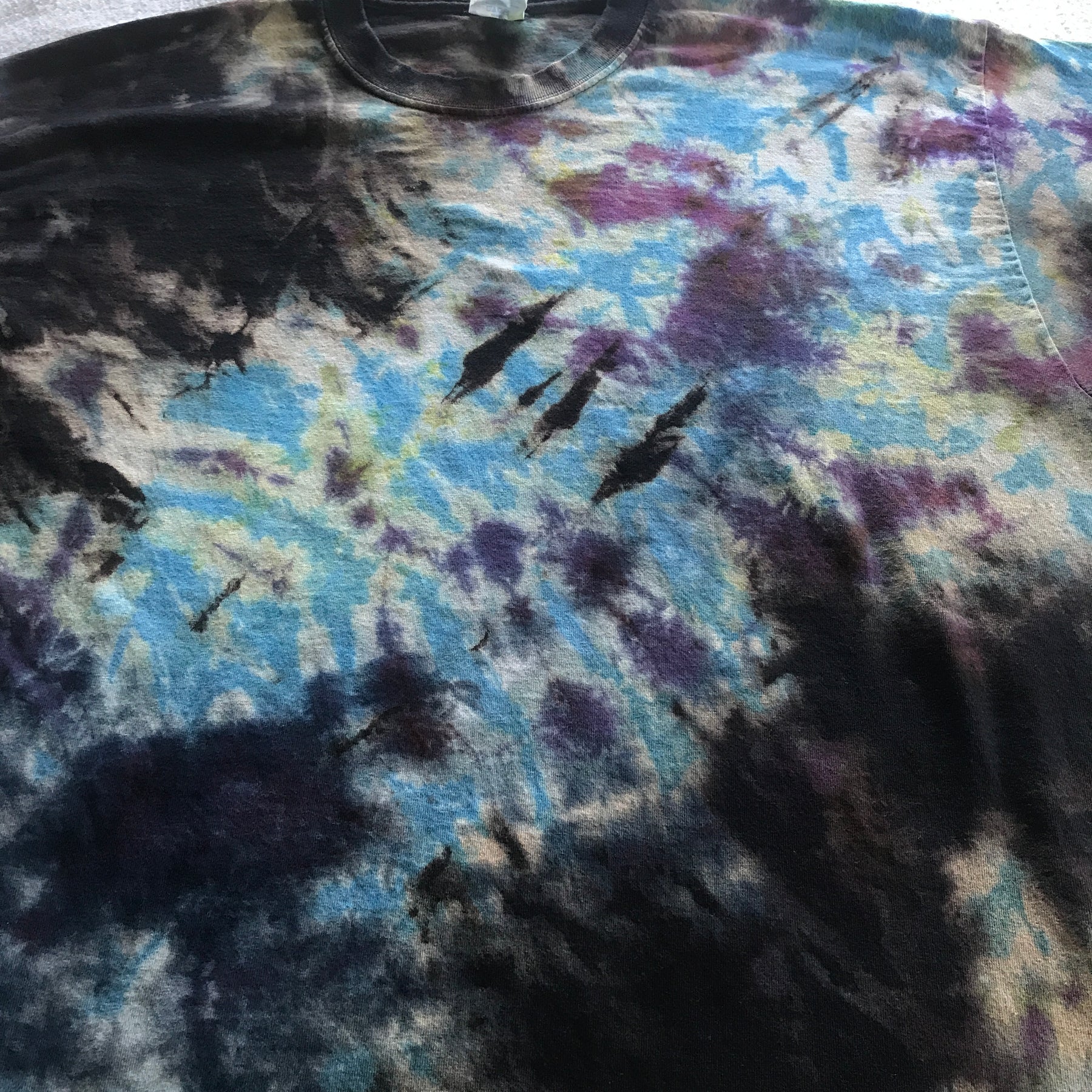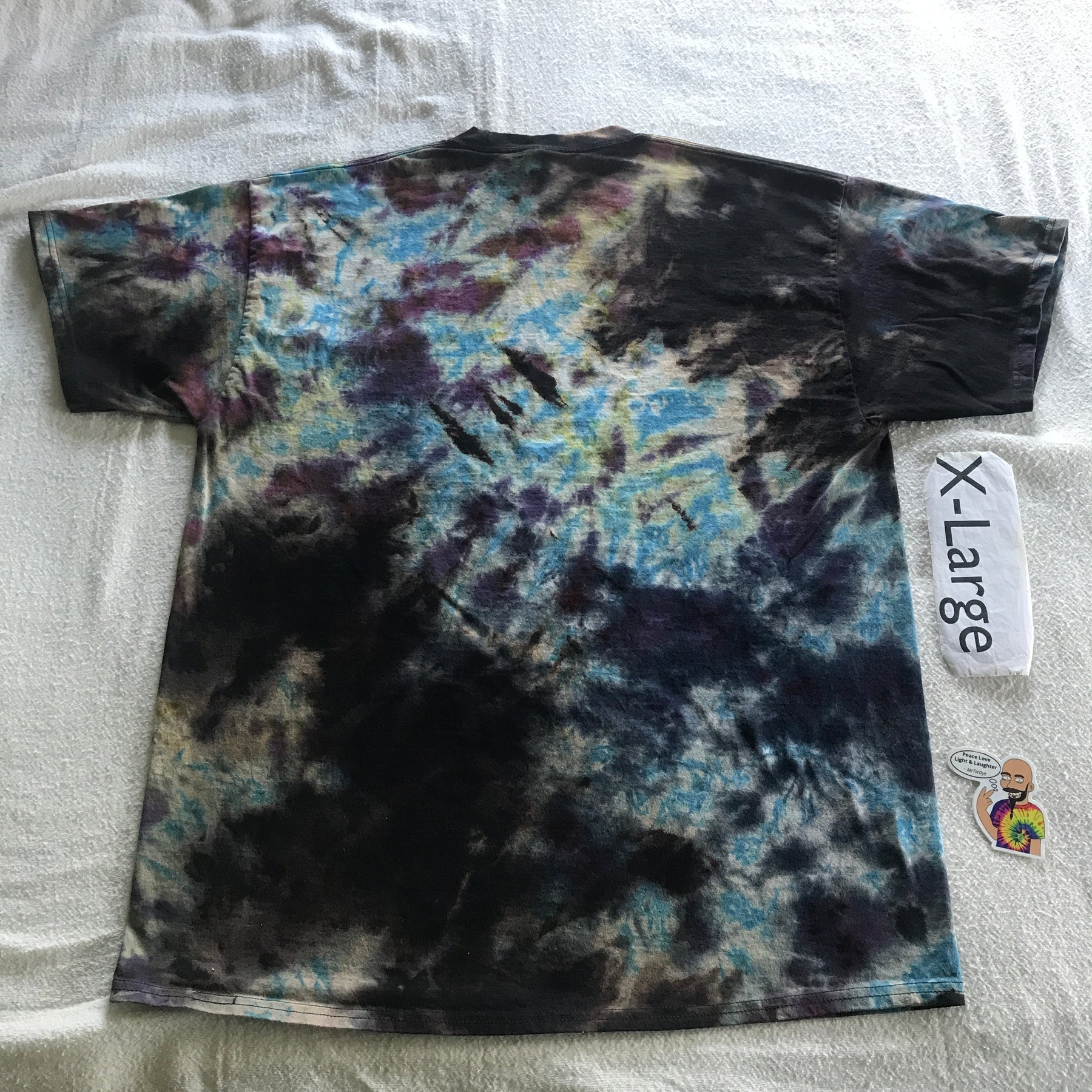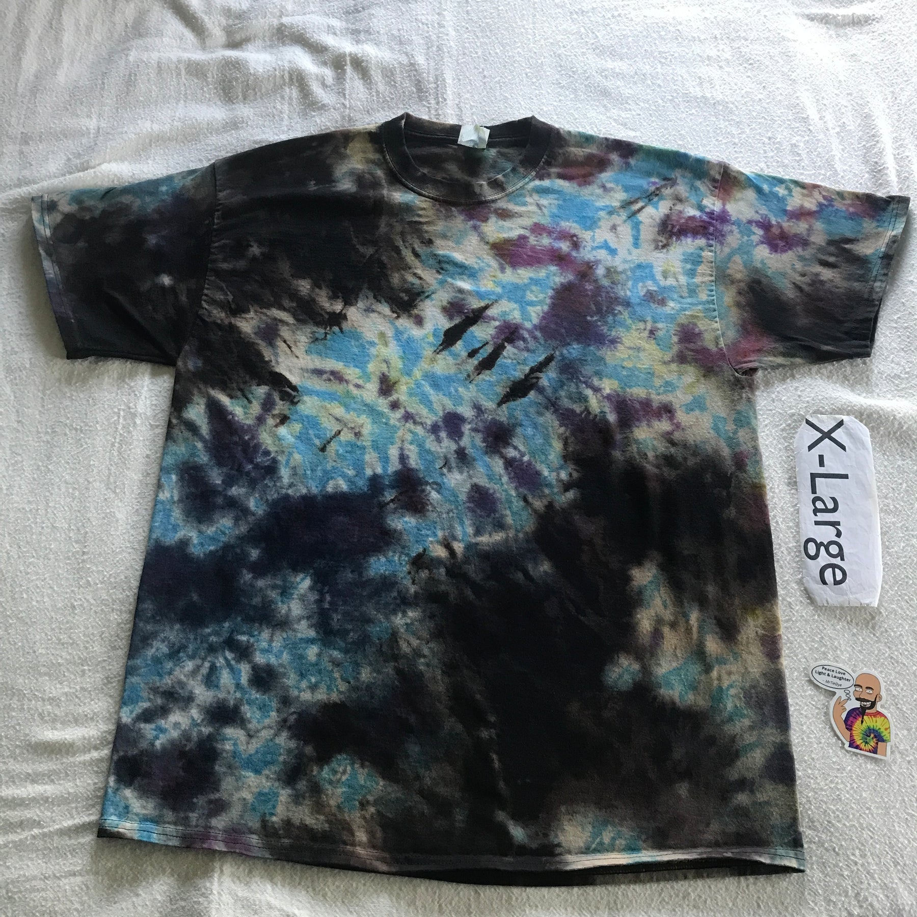 Great dyes, quality tees, and attention to detail, combined with my ability to embrace the random nature of liquid color, equals an awesome new shirt for you to wear and show off. Each tee is handmade, so every tee shirt is unique.... I may be able to do one similar, but never exact.