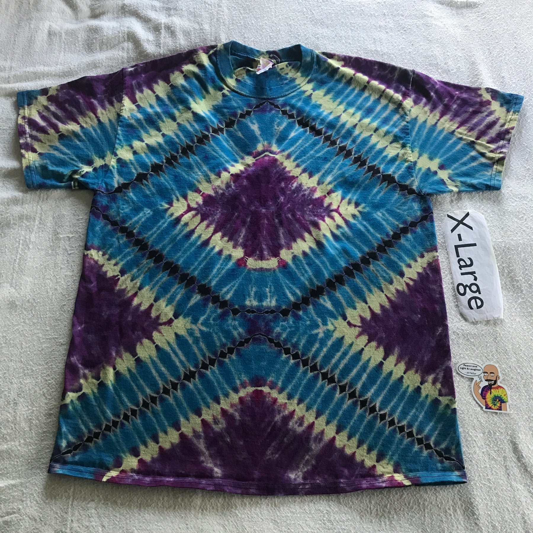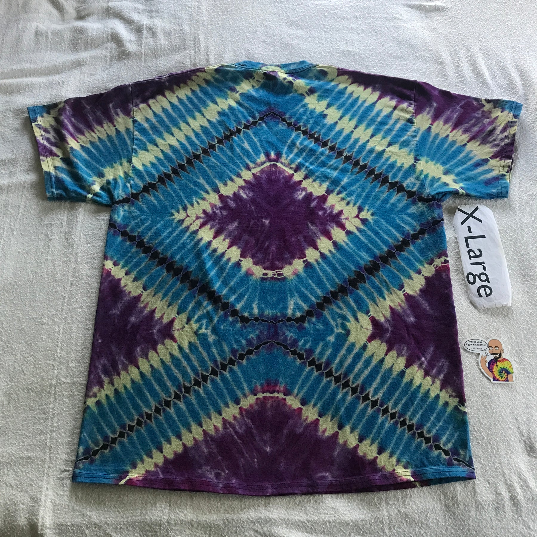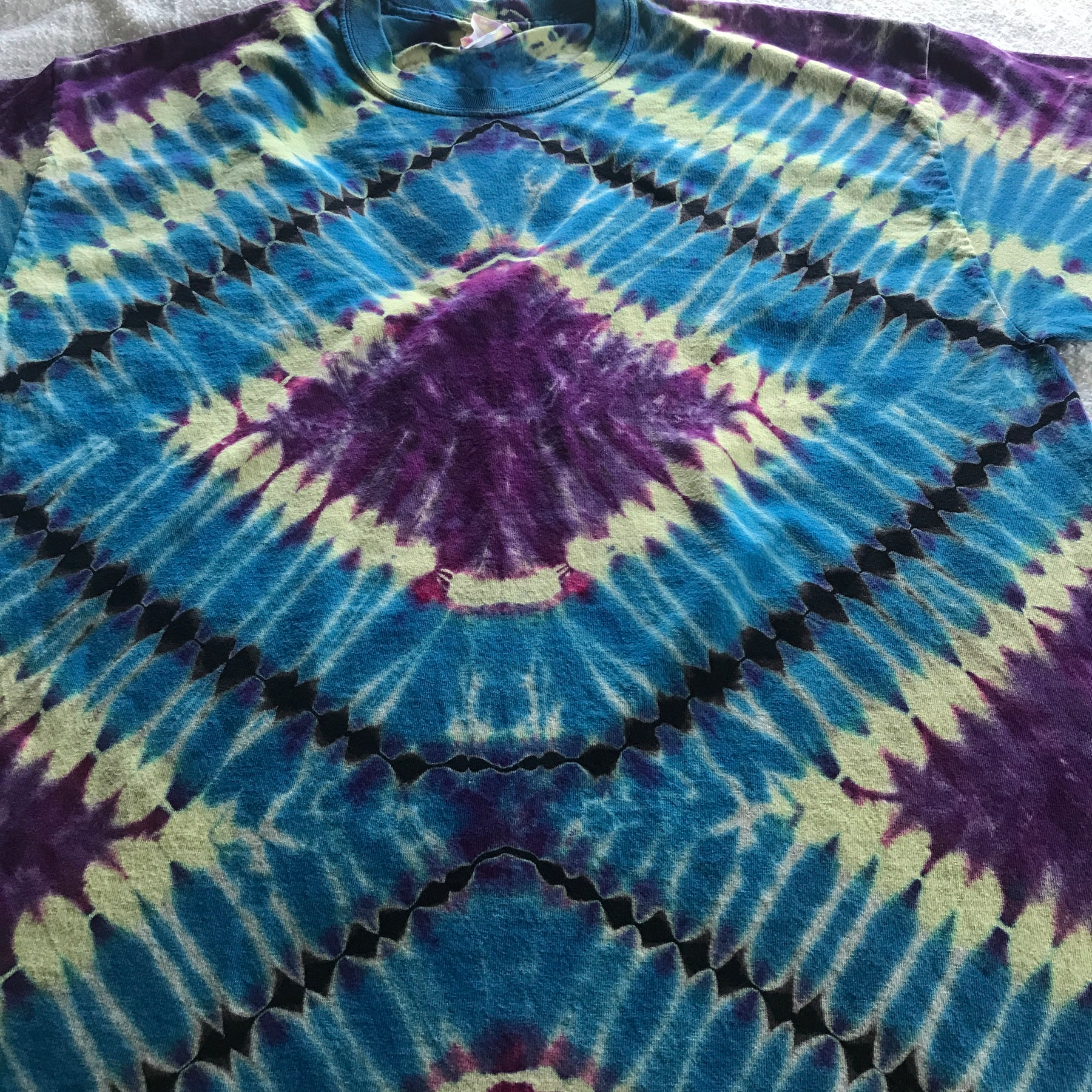 Great dyes, quality tees, and attention to detail, combined with my ability to embrace the random nature of liquid color, equals an awesome new shirt for you to wear and show off. Each tee is handmade, so every tee shirt is unique.... I may be able to do one similar, but never exact.