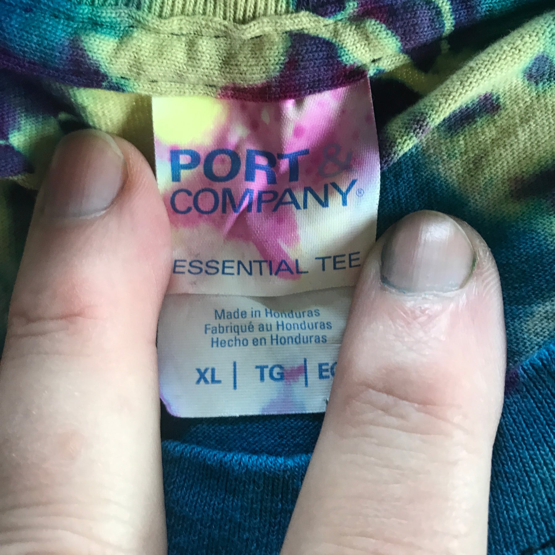 I use Procion dyes which are professional strength commercial dyes, the colors stay bright for years. This tee is a Port & Company Tee, it is 6.1 oz, 100% pre-shrunk cotton.