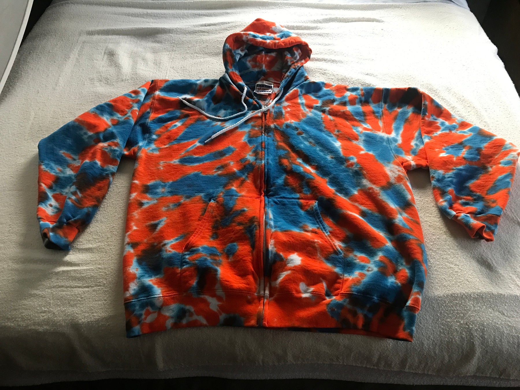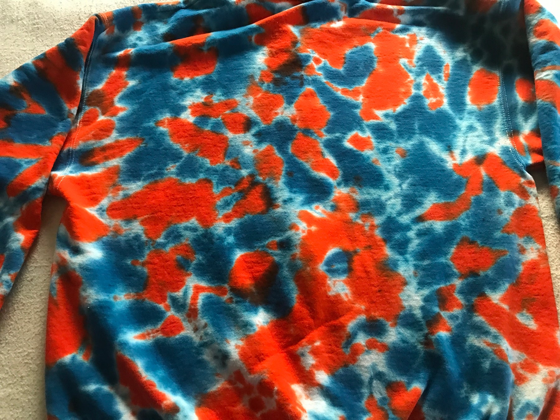 I use Procion dyes which are professional strength commercial dyes, the colors stay bright for years. I work with Gildan Ultra tees or Port & Company tees, they are 6.1 oz, 100% pre-shrunk cotton.